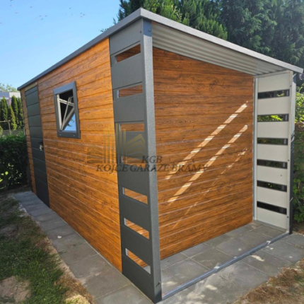 Garaż z wiatka w kolorze grafit panel poziomy T7
