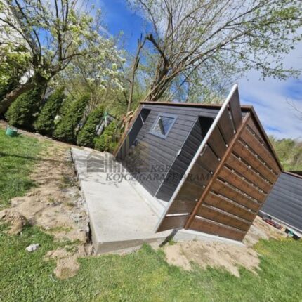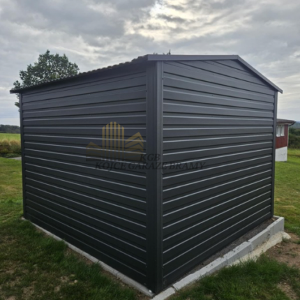 Garaż w kolorze grafit mat w panelu T7 poziomym spad dachu na tył