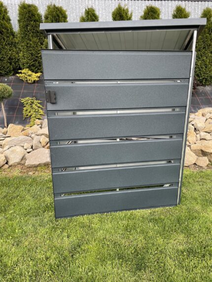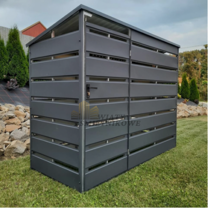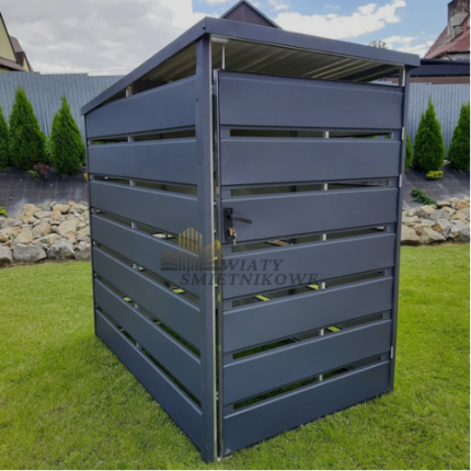 👉szerokość 1.80 m 👉długość 0.80 m 👉pokryta blachą panelową w kolorze grafit 👉konstrukcja wykonana z profilu zamkniętego ocynkowanego 👉dach jednospadowy 👉drzwi dwuskrzydłowe ze słupkiem na środku 👉wysokość przodu 1.60m 👉wysokość tyłu 1.50 m 👉zamykanie na magnez 👉okucia narożne☝️Oferujemy konstrukcje stalowe na każdy wymiar i dowolny kolor